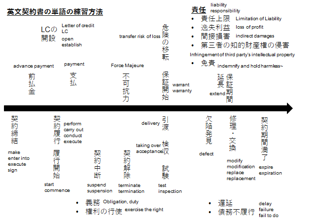 もっと細かく契約上のイベントを日本語列挙し、その隣に関係する英単語を片っ端に列挙するとより効果的です。
