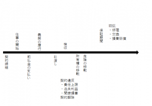 この横軸に、次のように、売買契約の時間的な流れの中で登場する主なイベントを書き込んでください。