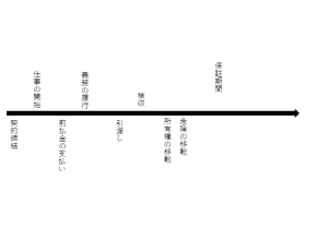 そして、下のように、横軸を引きます。この横軸は、時間軸です。