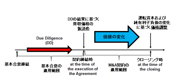 つまり、一旦契約金額を契約締結日に合意した後、実際に買収が完了するまでの間に結構な期間があるのです。